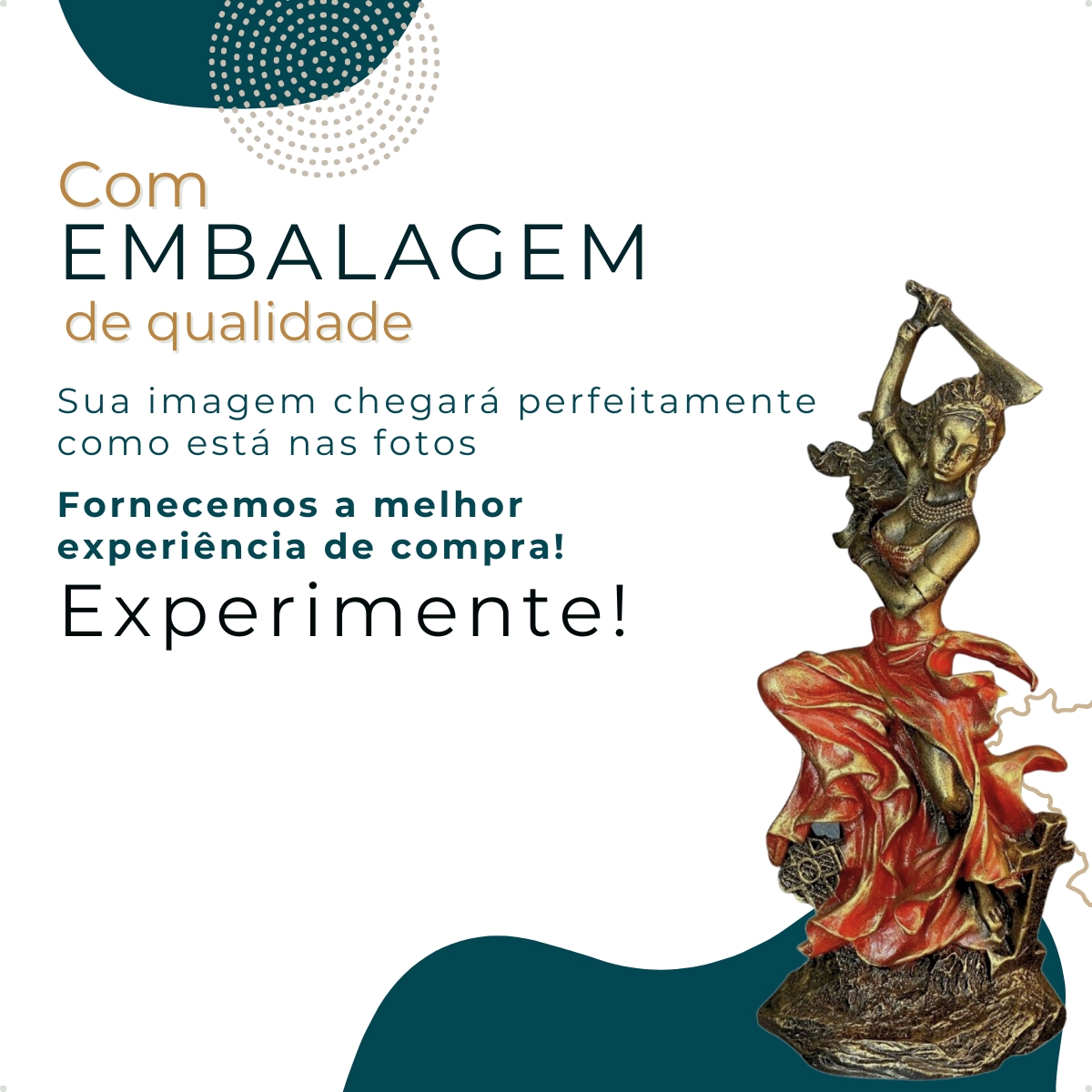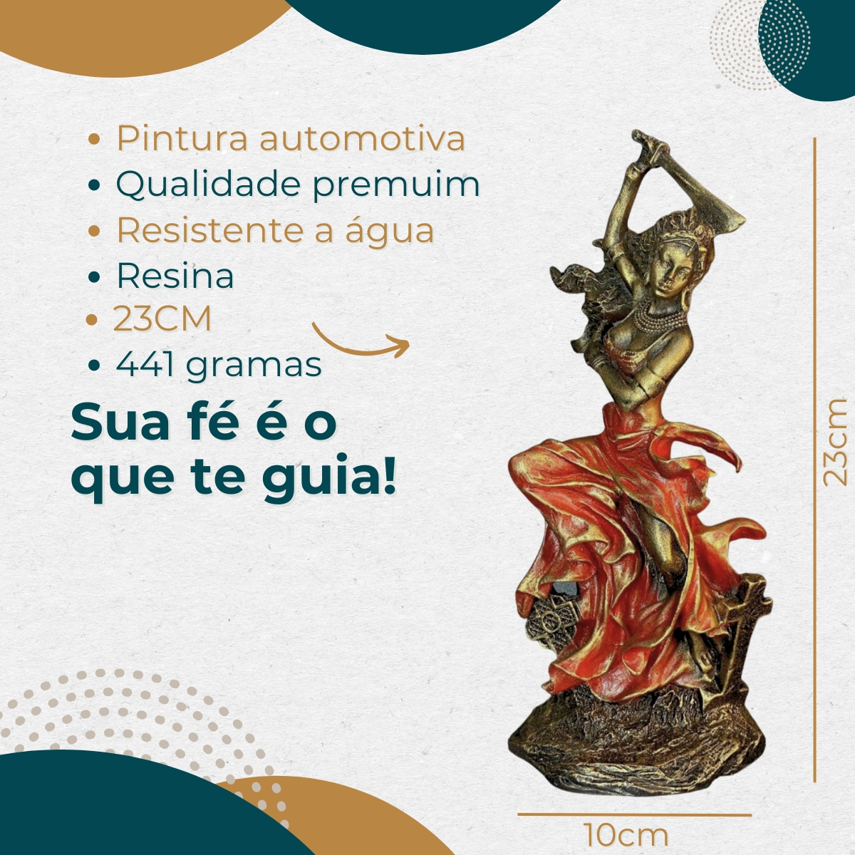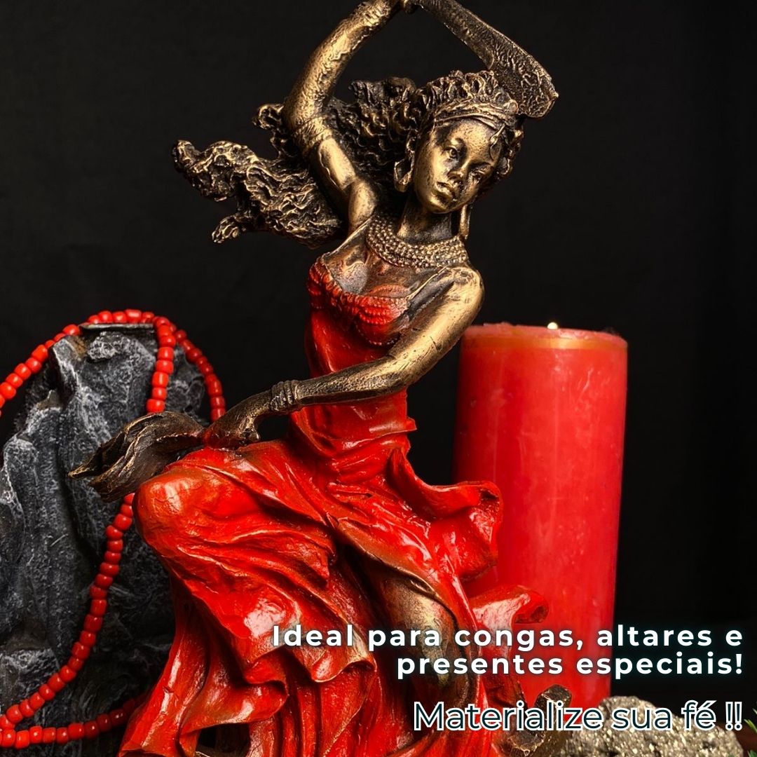 IMAGEM ESTÁTUA ORIXÁ IANSÃ MOD 1 DOURADA EXCLUSIVA STUDIO ORION