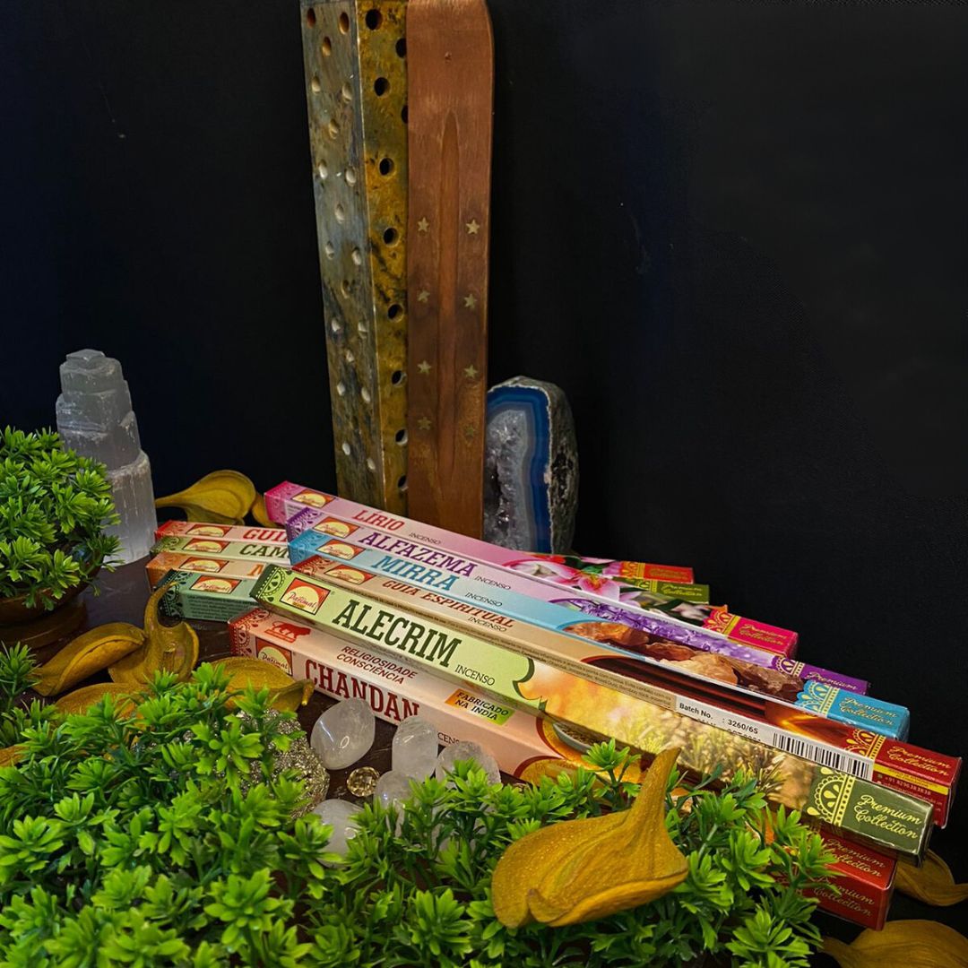 Os incensos são compostos por plantas, resinas aromáticas, carvão vegetal, massala, madeiras aromáticas, óleos essenciais e/ou óleos concentrados aromáticos. Ao serem queimados, espalham sua fumaça carregada da energia peculiar de cada planta, que muitas vezes atuam como uma medicina que vem pelo ar.