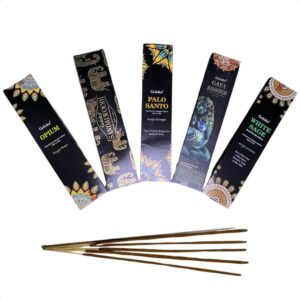 Este kit contém 5 caixas de incenso de vareta mais pedidos, totalizando aproximadamente 70 incensos. Cada kit é composto por uma variedade de aromas, portanto, nem todos os kits serão iguais ao da imagem.