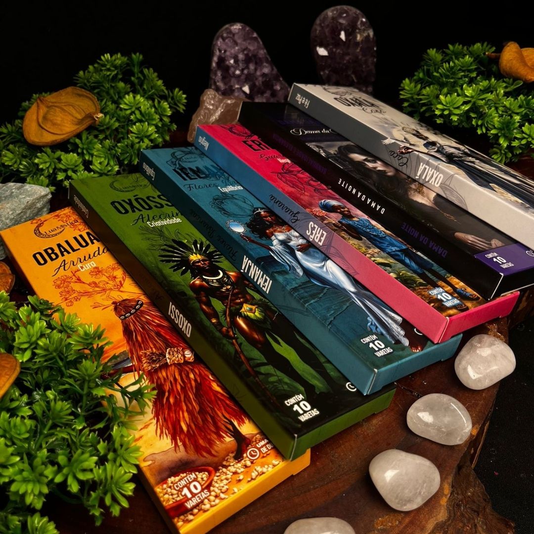 Este kit contém 5 caixas de incenso de vareta mais pedidos, totalizando aproximadamente 50 incensos. Cada kit é composto por uma variedade de aromas, portanto, nem todos os kits serão iguais ao da imagem.