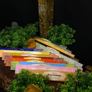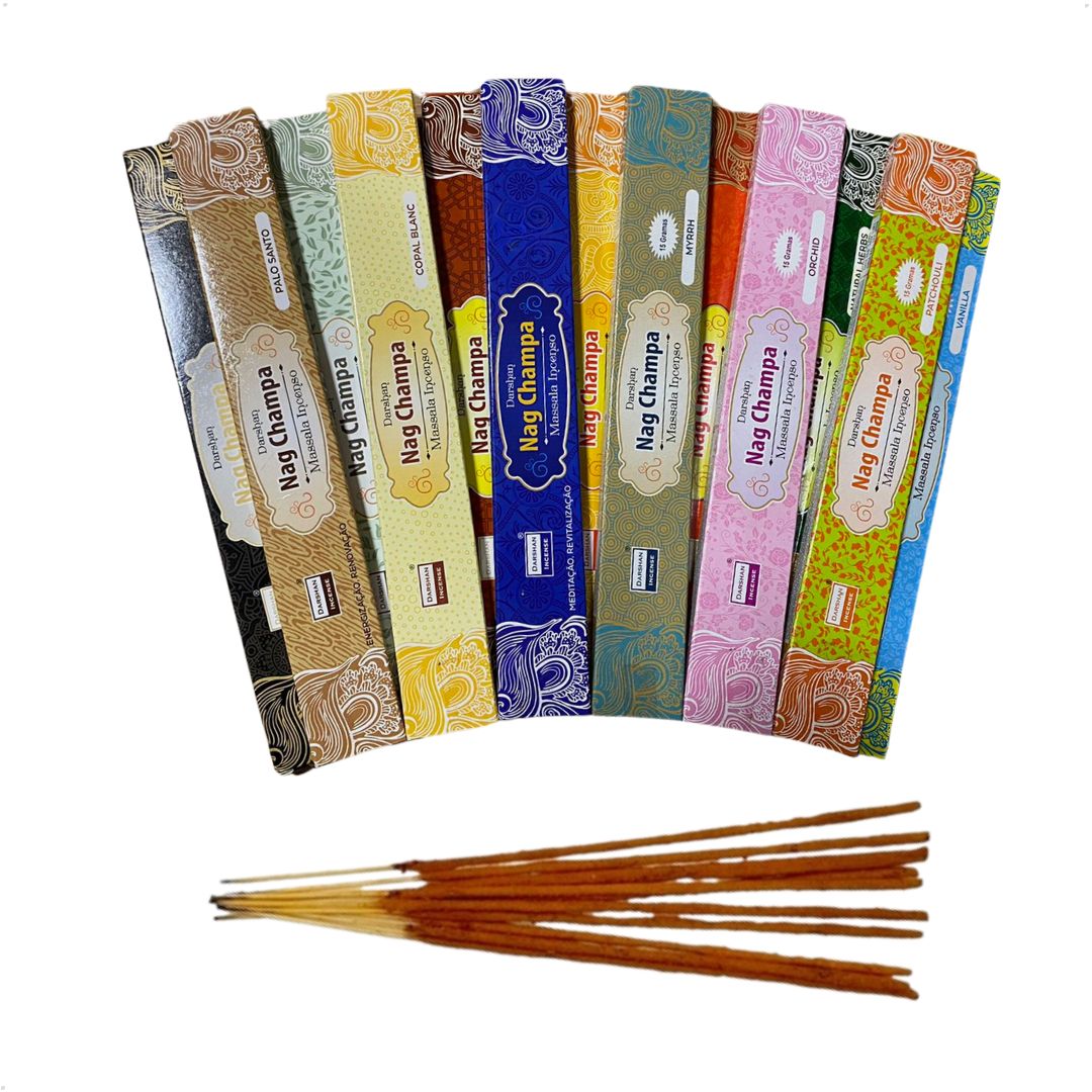 Este kit contém 5 caixas de incenso de vareta mais pedidos, totalizando aproximadamente 50 incensos. Cada kit é composto por uma variedade de aromas, portanto, nem todos os kits serão iguais ao da imagem.