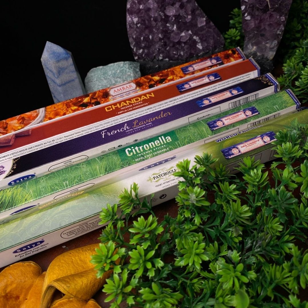 Os incensos são compostos por plantas, resinas aromáticas, carvão vegetal, massala, madeiras aromáticas, óleos essenciais e/ou óleos concentrados aromáticos. Ao serem queimados, espalham sua fumaça carregada da energia peculiar de cada planta, que muitas vezes atuam como uma medicina que vem pelo ar.