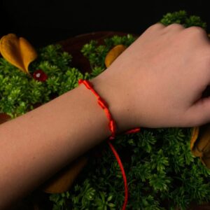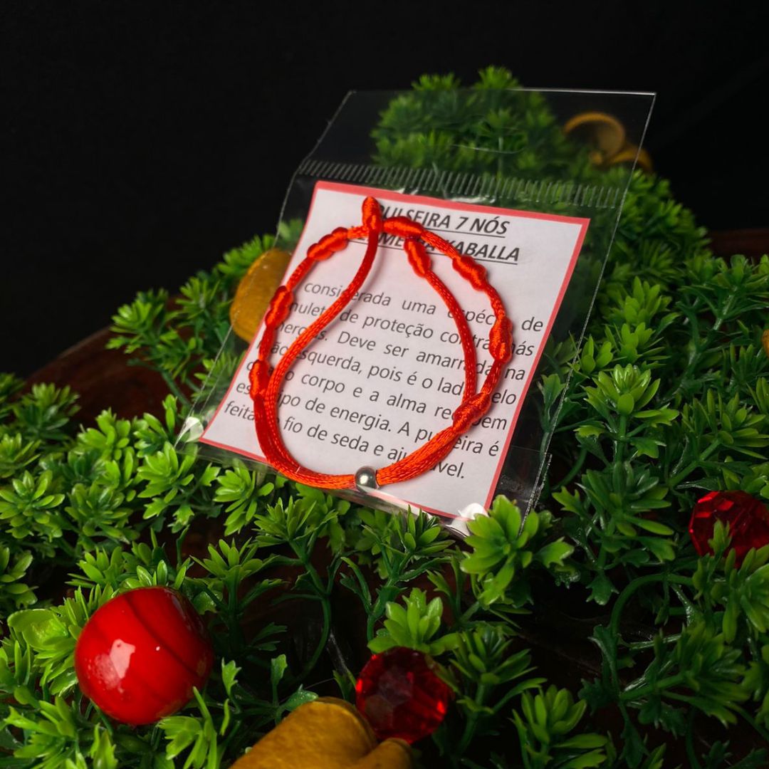 A pulseira vermelha de sete nós é considerada uma espécie de amuleto de proteção contra as más energias. Deve ser amarrada na mão esquerda, pois é o lado pelo qual o corpo e a alma recebem todo tipo de energia; e nesta ocasião, as mais especiais são as energias protetoras.